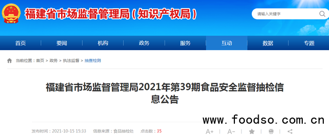 福建省市場(chǎng)監(jiān)督管理局公布13批次食品抽檢不合格(2021年第39期)