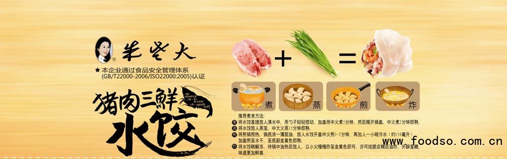 山東朱老大食品有限公司成立于2001年3月,是一家集速凍食品生產(chǎn)、加工、銷售為一體的現(xiàn)代標(biāo)準(zhǔn)化企業(yè),主要生產(chǎn)經(jīng)營冰糖葫蘆、速凍水餃、湯圓等產(chǎn)品。屬于魯南蘇北地區(qū)規(guī)模較大、設(shè)備先進(jìn)、設(shè)施齊全的速凍食品加工基地,近幾年來,企業(yè)在各級領(lǐng)導(dǎo)的關(guān)懷和社會各界的大力支持下,實(shí)現(xiàn)了持續(xù)、健康、穩(wěn)步、和諧發(fā)展,取得了良好社會效益和經(jīng)濟(jì)效益。2007年,“朱老大”牌冰糖葫蘆、速凍水餃產(chǎn)品被評為“臨沂市名優(yōu)農(nóng)產(chǎn)品”。2010年,朱老大系列水餃榮獲“中國名餃”稱號。2011年,“朱老大”商標(biāo)被山東省工商行政管理局認(rèn)定為“山東省著名商標(biāo)”。 公司始終以“傳承餐飲文化、弘揚(yáng)民族產(chǎn)業(yè)”為己任,積極弘揚(yáng)“沂蒙精神、紅嫂精神”,興業(yè)不忘擁軍報國,長期堅持參加擁軍優(yōu)屬活動,服務(wù)社會大眾,努力回報社會,在潛心經(jīng)營企業(yè)的基礎(chǔ)上,充分發(fā)揮“紅嫂型”企業(yè)的整體優(yōu)勢,努力推動擁軍工作的深入開展。公司以民族傳統(tǒng)飲食為基礎(chǔ),注重產(chǎn)品質(zhì)量,不斷提高產(chǎn)品品質(zhì)。公司嚴(yán)格按照國家產(chǎn)業(yè)政策的發(fā)展方向,不斷拓寬發(fā)展思路,積極響應(yīng)國家發(fā)展政策,堅持走科學(xué)發(fā)展、和諧發(fā)展、持續(xù)發(fā)展的道路。使企業(yè)在正規(guī)化、科學(xué)化、規(guī)范化的軌道上一年一個新臺階,始終走在食品行業(yè)的前列。朱老大冰糖葫蘆榮獲“世界藍(lán)天杯”金獎,被國際風(fēng)聯(lián)指定為唯一特許專用精品,風(fēng)箏會吉祥物和標(biāo)志。朱老大系列水餃產(chǎn)品,其選料以鮮為本、制作以潔為綱,以營養(yǎng)均衡、配方獨(dú)特、清淡鮮美、爽滑筋道,被譽(yù)為真正的專家水餃。國際著名營養(yǎng)學(xué)家于若木品嘗后,欣然題詞:“中華一寶——朱老大水餃”。 公司認(rèn)真落實(shí)科學(xué)發(fā)展觀,與時俱進(jìn),開拓創(chuàng)新,以人為本,實(shí)施名牌發(fā)展戰(zhàn)略,經(jīng)過嚴(yán)格的質(zhì)量控制,通過了HACCP食品安全管理體系認(rèn)證和國家食品質(zhì)量安全認(rèn)證(QS認(rèn)證)。