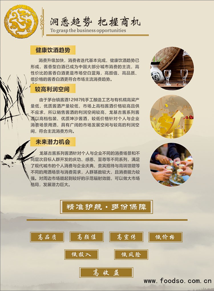 龍基古醬感恩 醬香型白酒 禮盒500mL是由貴州龍基古醬酒業(yè)有限公司生產(chǎn),是白酒知名品牌,貴州龍基古醬酒業(yè)有限公司采用茅臺鎮(zhèn)獨有的釀酒工藝精心釀造。龍基古醬感恩 醬香型白酒 禮盒500mL凈透明,口感香醇、淡雅,回味悠長。適合中國人體質(zhì)和飲用習(xí)慣,現(xiàn)面向全國各地誠招代理商。