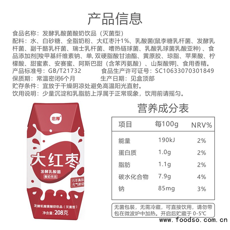 湖北忠厚乳業(yè)集團(tuán)有限公司 是國內(nèi)專業(yè)的發(fā)酵乳酸菌酸奶飲品招商代理平臺,忠厚乳業(yè)大紅棗發(fā)酵乳酸菌酸奶飲品208gX6盒由湖北忠厚乳業(yè)集團(tuán)有限公司 榮譽(yù)出品,我們秉承“一切為了市場,一切為了顧客,敢為人先,追求卓越,把困難留給自己,把方便讓給別人”的經(jīng)營理念,為經(jīng)銷商朋友提供滿意的產(chǎn)品。