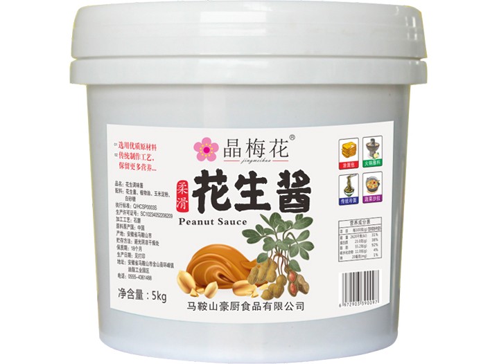 花生醬,是花生油提取前的產(chǎn)物?;ㄉu的色澤為黃褐色,質(zhì)地細(xì)膩,味美,具有花生固有的濃郁香氣,不發(fā)霉,不生蟲(chóng)。一般用作拌面條、饅頭、面包或涼拌菜等的調(diào)味品,也是作甜餅、甜包子等餡心配料。