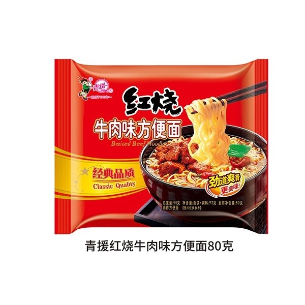 青援紅燒牛肉味方便面80g是由青援食品有限公司經(jīng)營的方便食品->方便面->方便面系列產(chǎn)品,該產(chǎn)品選用品質(zhì)優(yōu)良的原材料制作而成,從選材到成品,每一步都經(jīng)過嚴(yán)格的質(zhì)量把控。該款產(chǎn)品食用方便,十分契合當(dāng)下消費(fèi)者的需求,只需簡(jiǎn)單的幾步操作,便能享受到美味,省時(shí)省力,是日常居家的好伴侶,大大節(jié)省您的用餐時(shí)間。在旅游、踏青等外出活動(dòng)中,也可以為您輕松解決用餐問題。這款產(chǎn)品口味多樣,每一口都能帶給你別樣的體驗(yàn)。公司將繼續(xù)致力于產(chǎn)品的研發(fā)和創(chuàng)新,為消費(fèi)者提供更加豐富的美味體驗(yàn)。想要代理本款產(chǎn)品的經(jīng)銷商歡迎致電!